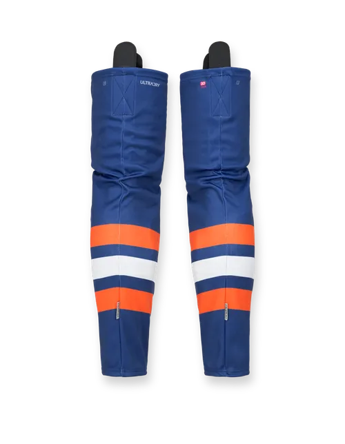 The HSV5 Pro Hockey Socks are not only functional and light weight, making them dry extremely fast, but give you plenty of custom design possibilties to make them match your jersey. The come in different lengths and have elastic properties that provide an anatomic fit that will help keep your shin pads in place. These socks come with integrated Velcro so you can fasten these to your jock system for maximum comfort